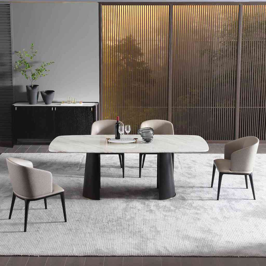 The Priscilla Marble Dining Table is a glamorous and perfectly curated addition to any modern dining room. The table strikes the perfect balance between stunning looks and durability, by pairing a honed marble table top with a wooden frame in a natural grain finish. Equally comfortable in casual and formal settings, this dining table will bring a new level of sophistication to your home.