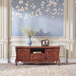 Capture the spirit of imperial France in your living room with the handcrafted Pascal French Entertainment TV Unit in medium brown. This elegant TV unit is the perfect centrepiece for any small living room, with a solid Beech wood frame complemented by a central drawer, an open compartment and two side door compartments. Ornate finishes and intricate floral designs provide the final touch to this gorgeous piece, with support provided by cabriole legs.