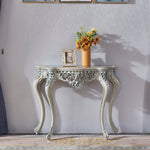 Inspired by 1930s Paris, the Antoinette French Console Table features pastel colours and soft curves that bestow it with a distinctly Parisian feel. Perfect for displaying your books and antiques, the light grey finish is paired with intricate ornaments in gold and silver accents to produce an understated yet glamorous look. Subtle curves flow throughout with support provided by cabriole legs.