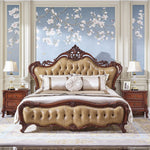 An elegant and classic addition to any bedroom, the handcrafted Apolline French Bed evokes a distinctly majestic feel. Featuring the highest quality velvet or full grain leather upholstery and solid Beech wood, this bed adds a luxurious accent to your bedroom. The handcrafted medium brown frame is paired with a light brown headboard and footboard (other colours available on request), while subtle curves complement the towering wingback headboard with tufted buttons. Available in King size only.