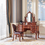Capture the spirit of imperial France in your bedroom with the handcrafted Apolline French Dressing Table in medium brown with intricate ornaments. Featuring a solid Beech wood frame and soft curves that bestow it with a distinctly Parisian feel, this piece is perfect for displaying your jewellery and antiques and will leave you feeling extra special every time you get ready.