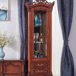Store your wine and antiques in style with the Armand Tall Display Cabinet in medium brown. A solid Beech wood frame is paired with ornate finishes and intricate floral designs to produce this versatile French style cabinet. Ideal for corner placement or either side of an entertainment unit. Subtle curves flow throughout with support provided by cabriole legs.